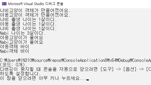 cout << name << "고양이 객체가 만들어졌어요.\n";