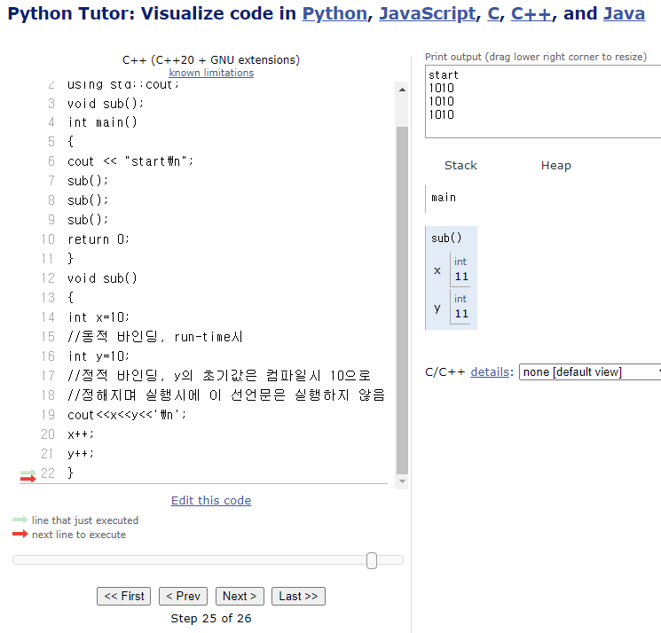 //정적 바인딩, y의 초기값은 컴파일시 10으로