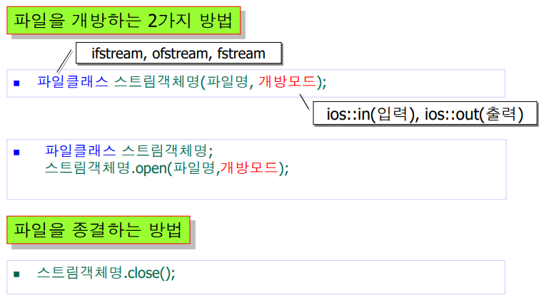 ifstream hin("test.txt"); // 입력파일 스트림 객체 hin 선언