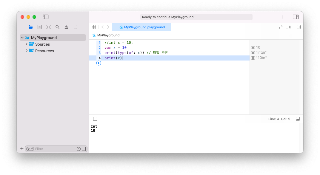 | Bool | 참/거짓 | var isStudent: Bool = true |