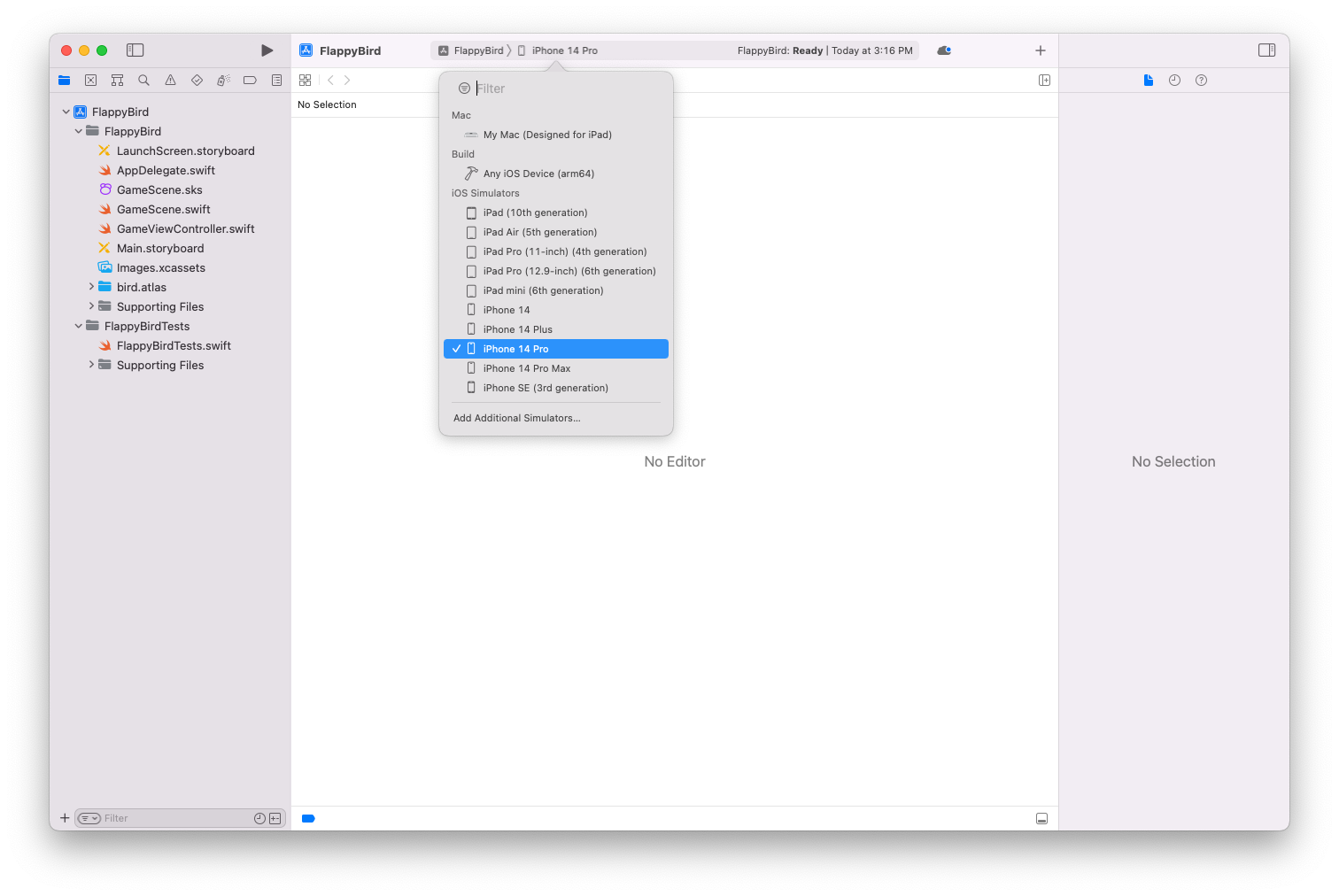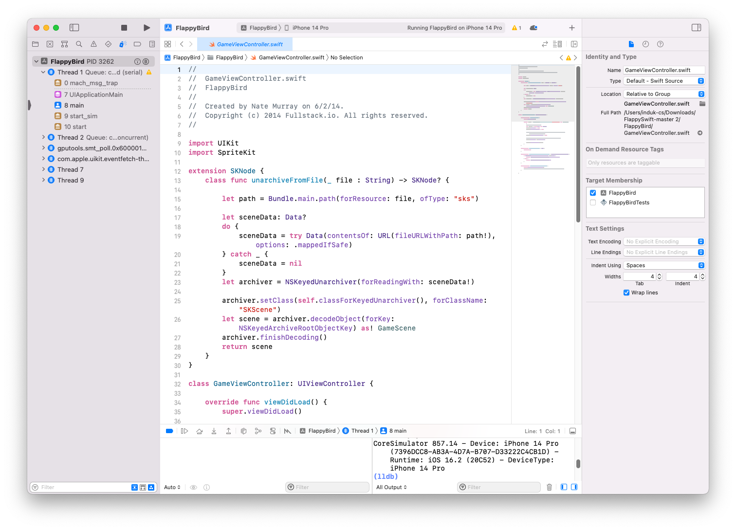 github에서 FlappyBird 다운로드 -> 압축해제 후 Xcode로 열기