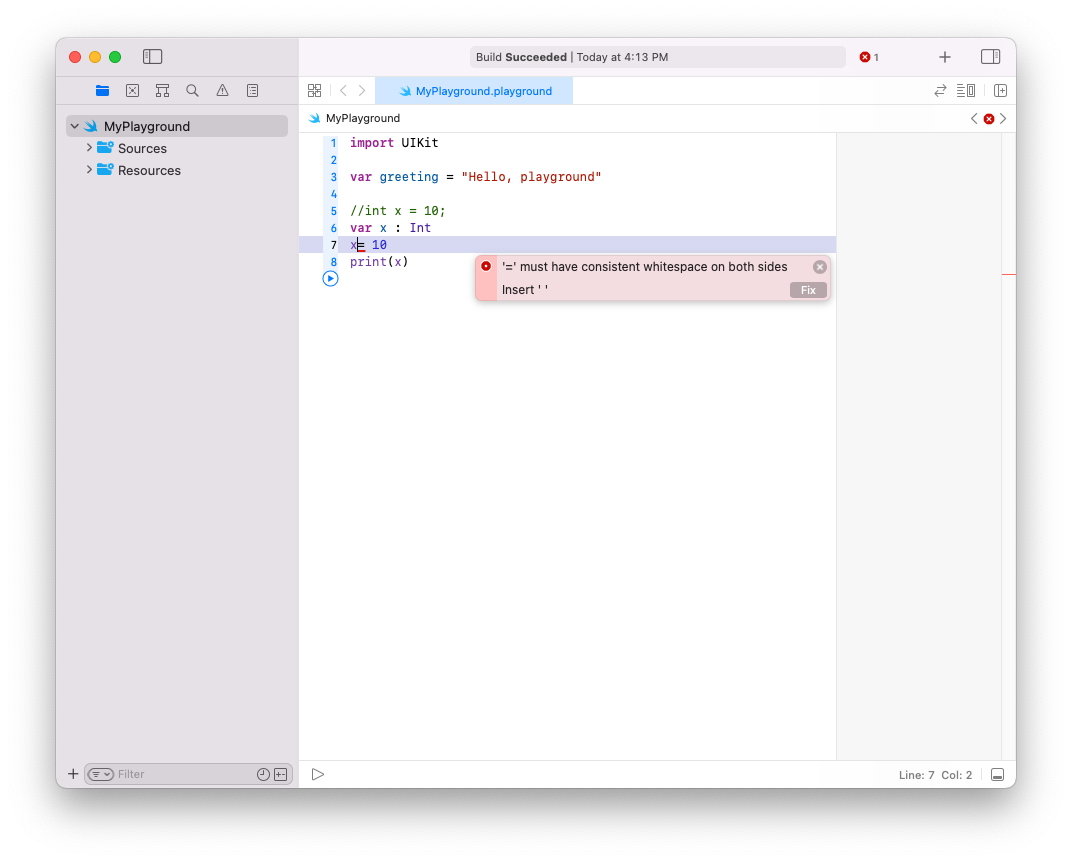 오류가 난 부분이 있다면 그 이유와 해결을 제시해주는 Xcode (Fix버튼을 누르면 고쳐짐)