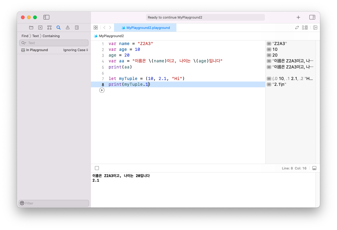var aa = "이름은 \(name)이고, 나이는 \(age)입니다"