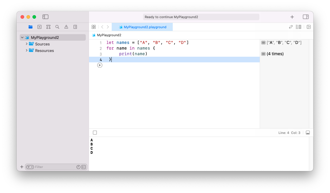 swift에서는 for문이나 if문을 사용할 때 뒤에 나올 실행코드가 한문장이라도 꼭 중괄호 안에 넣어줘야 한다.