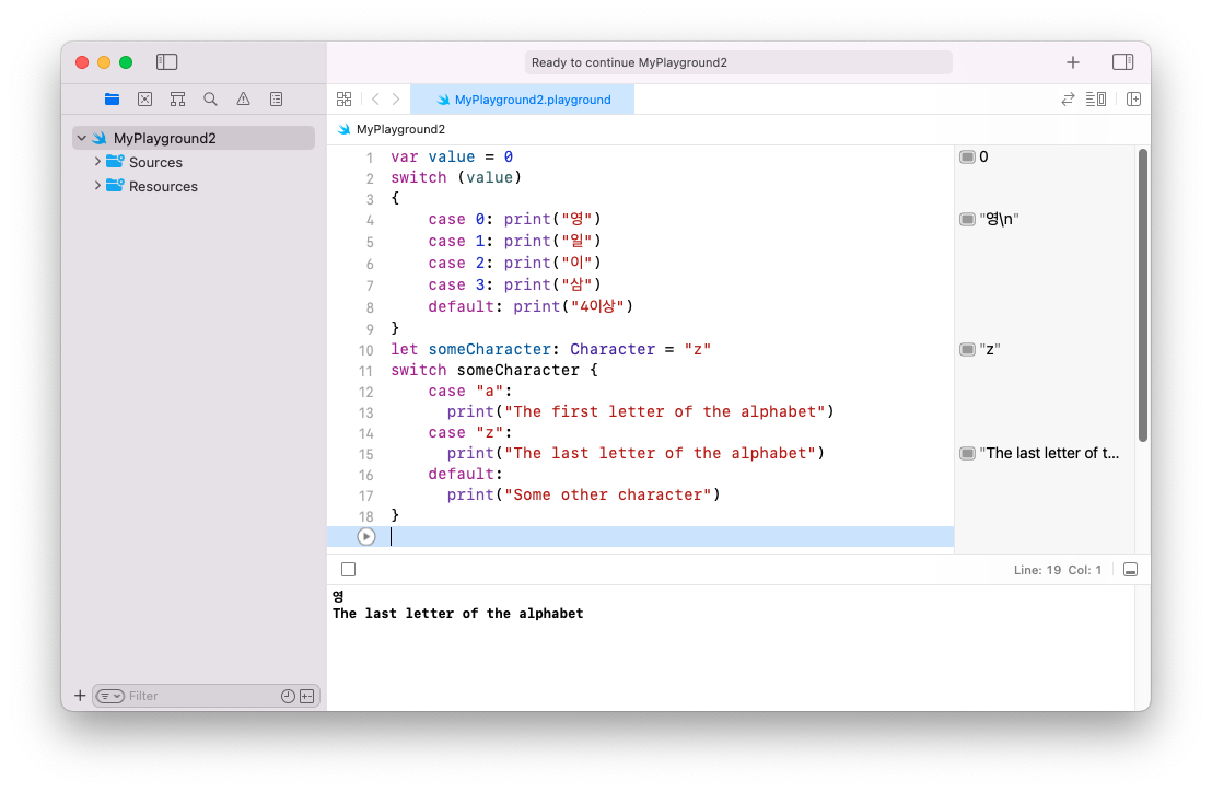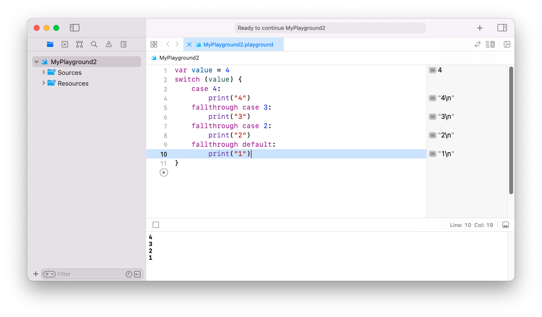 - Swift는 일치하는 case문을 만나면 자동으로 빠져나옴
