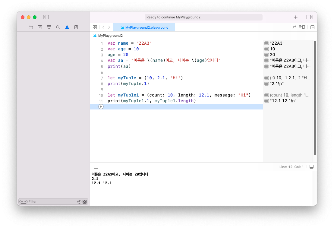 let myTuple1 = (count: 10, length: 12.1, message: "Hi")