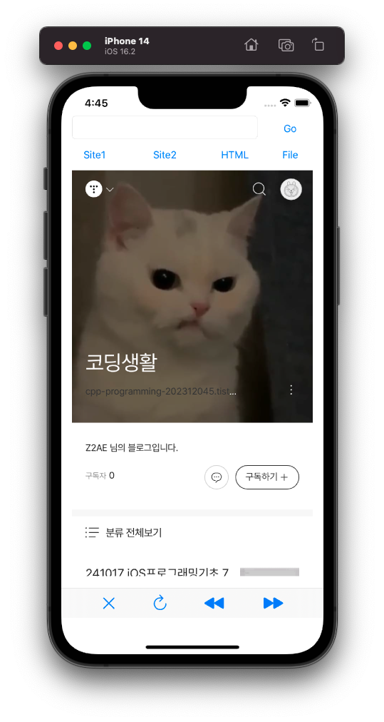 - ViewController를 통해 수정하여 자신의 블로그 주소로 바꾸고 실행하기
