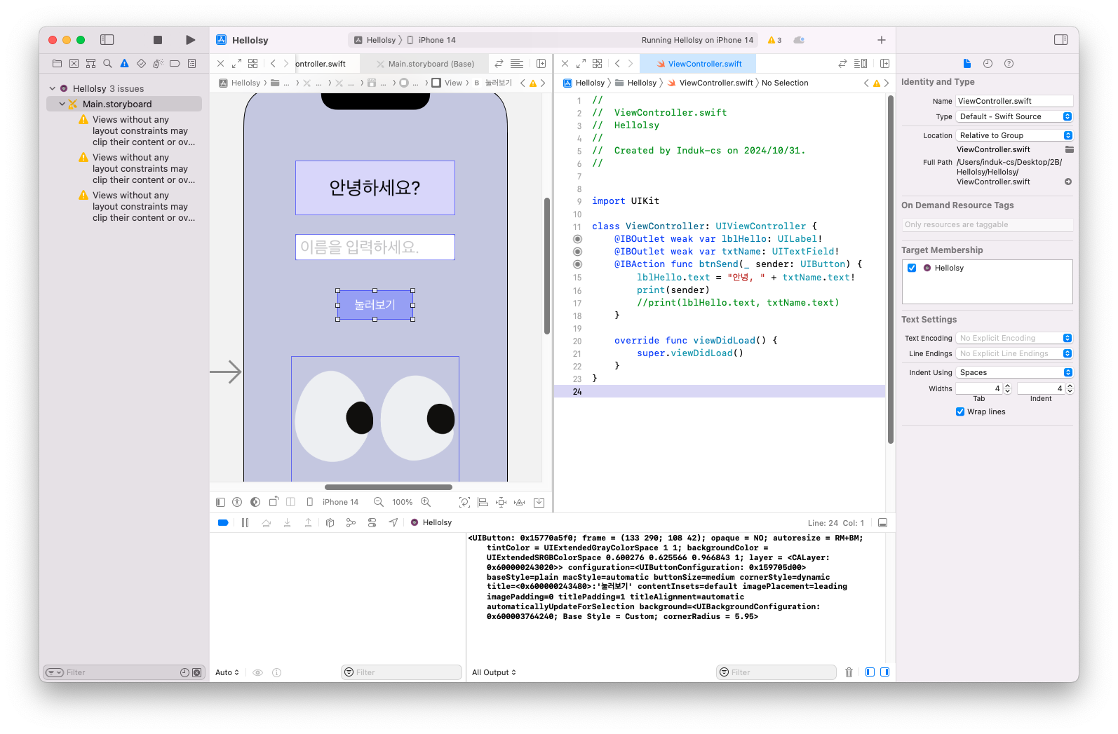 | 241002 iOS프로그래밍기초 5주차 (2) | 2024.10.14 |
