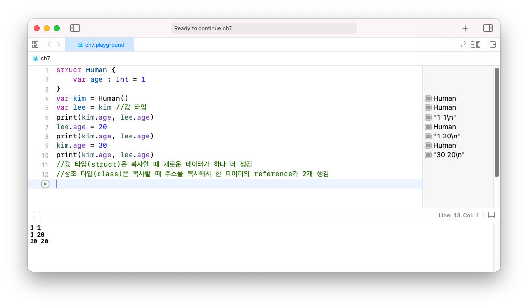 swift에서 구조체를 사용할 때와 class를 사용할 때의 차이점