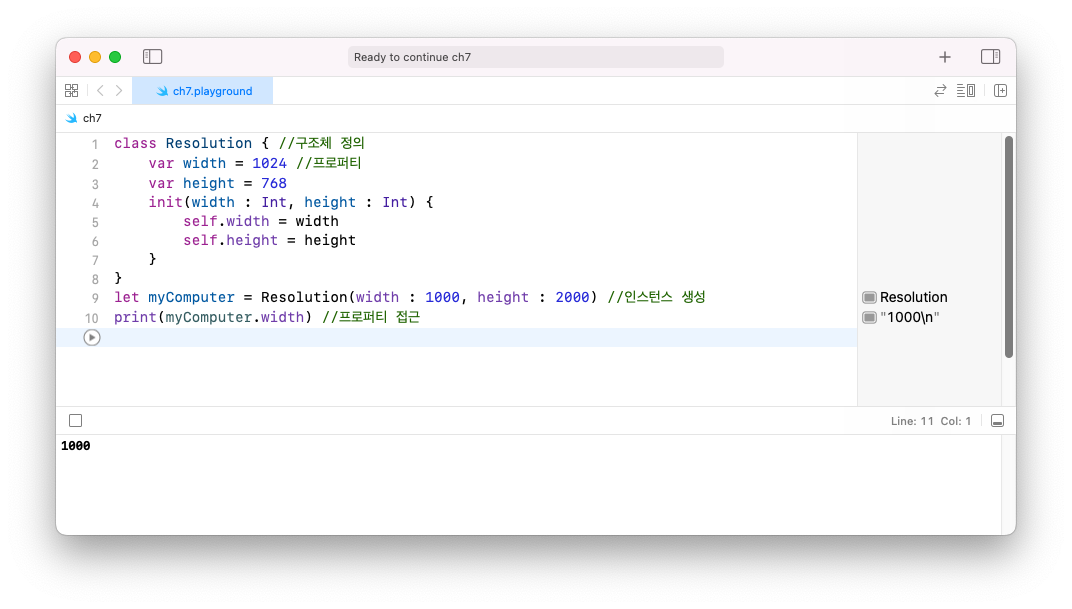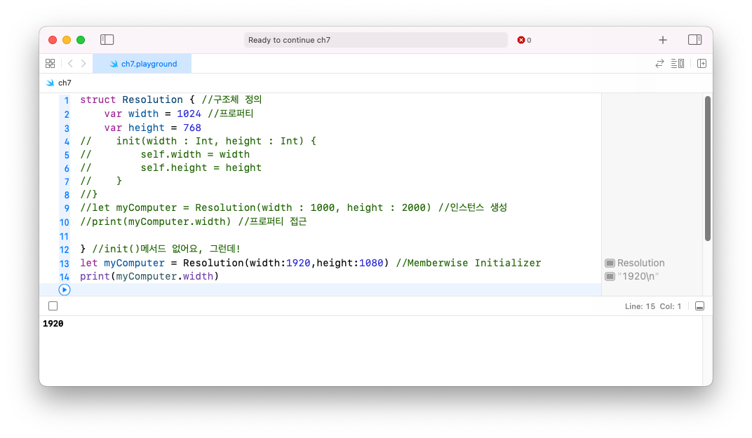 지금 배우고있는 구조체 - Memberwise Initializer가 자동으로 만들어짐