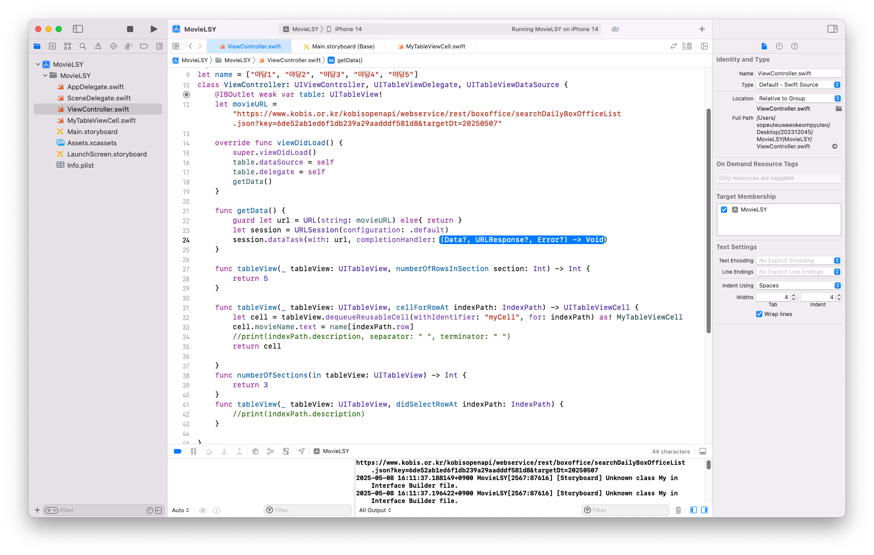 let movieURL = "https://www.kobis.or.kr/kobisopenapi/webservice/rest/boxoffice/searchDailyBoxOfficeList.json?key=6de52ab1ed6f1db239a29aadddf581d8&targetDt=20250507"