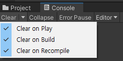 Clear On Play : 실행 전에 Console창을 지우고 시작