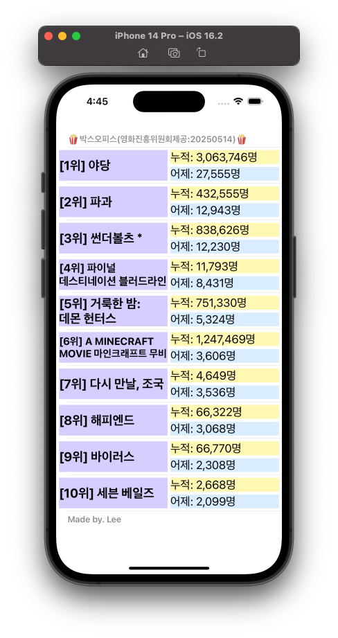 return "🍿박스오피스(영화진흥위원회 제공 : "+makeYesterdayString()+")🍿"